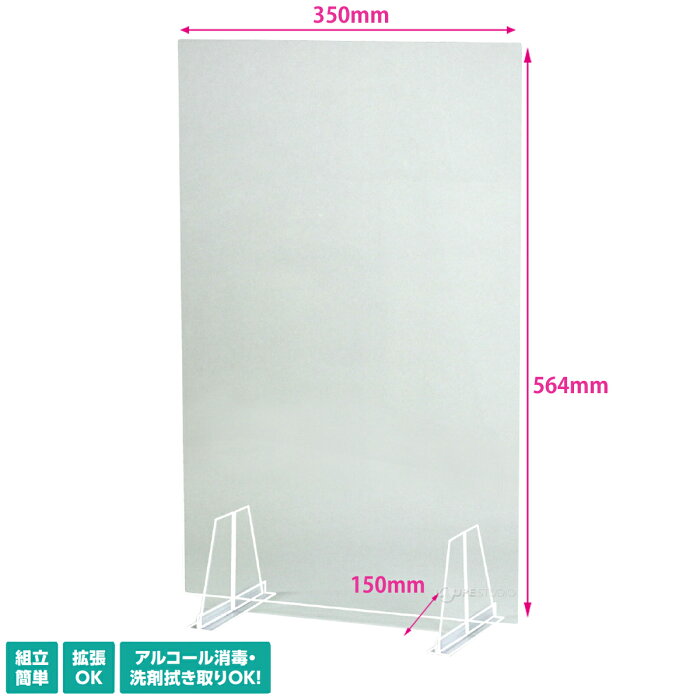 対面での接客や打ち合わせ、会議などの飛沫防止に!完成サイズ:W450×H500×D100mm飛沫防止 アクリル板 パーテーション 卓上 パネル セット 縦長 幅350mm 2mm厚 両面保護フィルム付 自立 透明 机 カウンター 机上 クリア組立簡単 消毒可能 間仕切り 仕切り 衝立 飲食店 オフィス 学校 病院 薬局 感染防止 アーテック商品番号:ATC-09304店舗やオフィスのウィルス対策に!2厚高透明度PET製パネルで組立簡単!拡張OK!商品サイズ:350×564×150mm4521718514482 ls@ATC-09366飛沫防止 アクリル板 パーテーション 卓上 パネル セット 縦長 25個セット 幅350mm 2mm厚 両面保護フィルム付 自立 透明 机 カウンター 机上 クリア組立簡単 消毒可能 間仕切り 仕切り 衝立 飲食店 オフィス 学校 病院 アーテック051448店舗やオフィスのウィルス対策に!2厚高透明度PET製パネルで組立簡単!拡張OK!商品サイズ:350×564×150mm店舗やオフィスのウィルス対策に!2mm厚高透明度PET製パネルで組立簡単!拡張OK!透明度の高いPET素材でアルコールや洗剤での清拭が可能です。